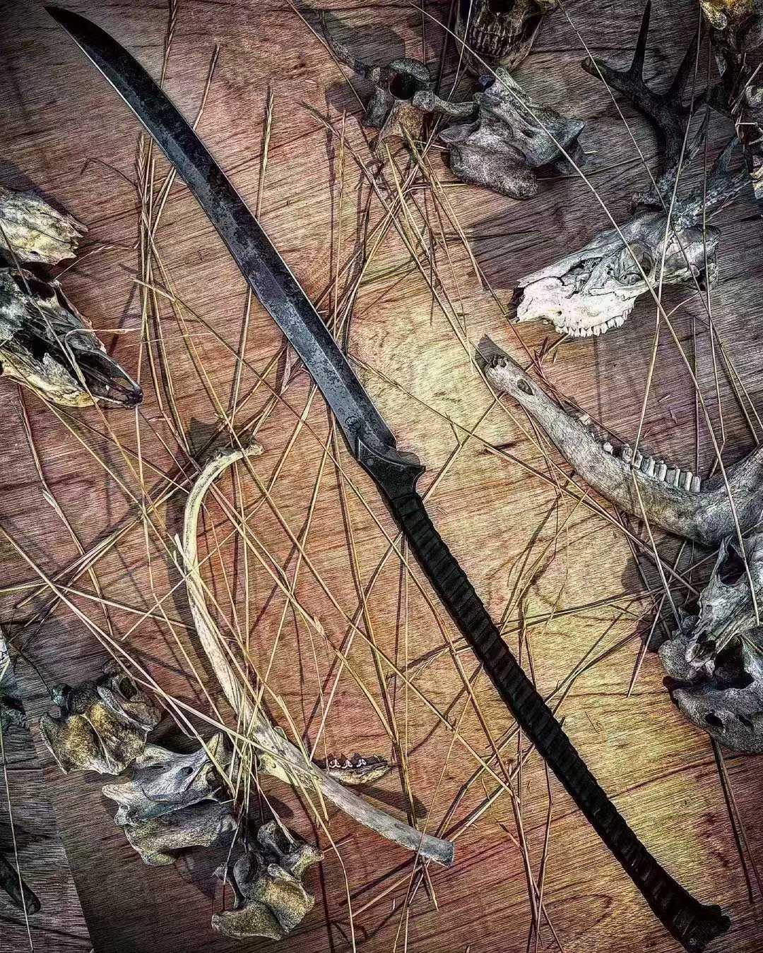 - Blade Material: Hand-forged Train Spring Steel, Retaining Original Forging Pattern